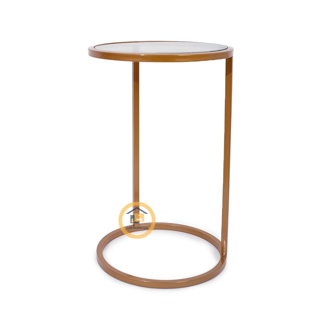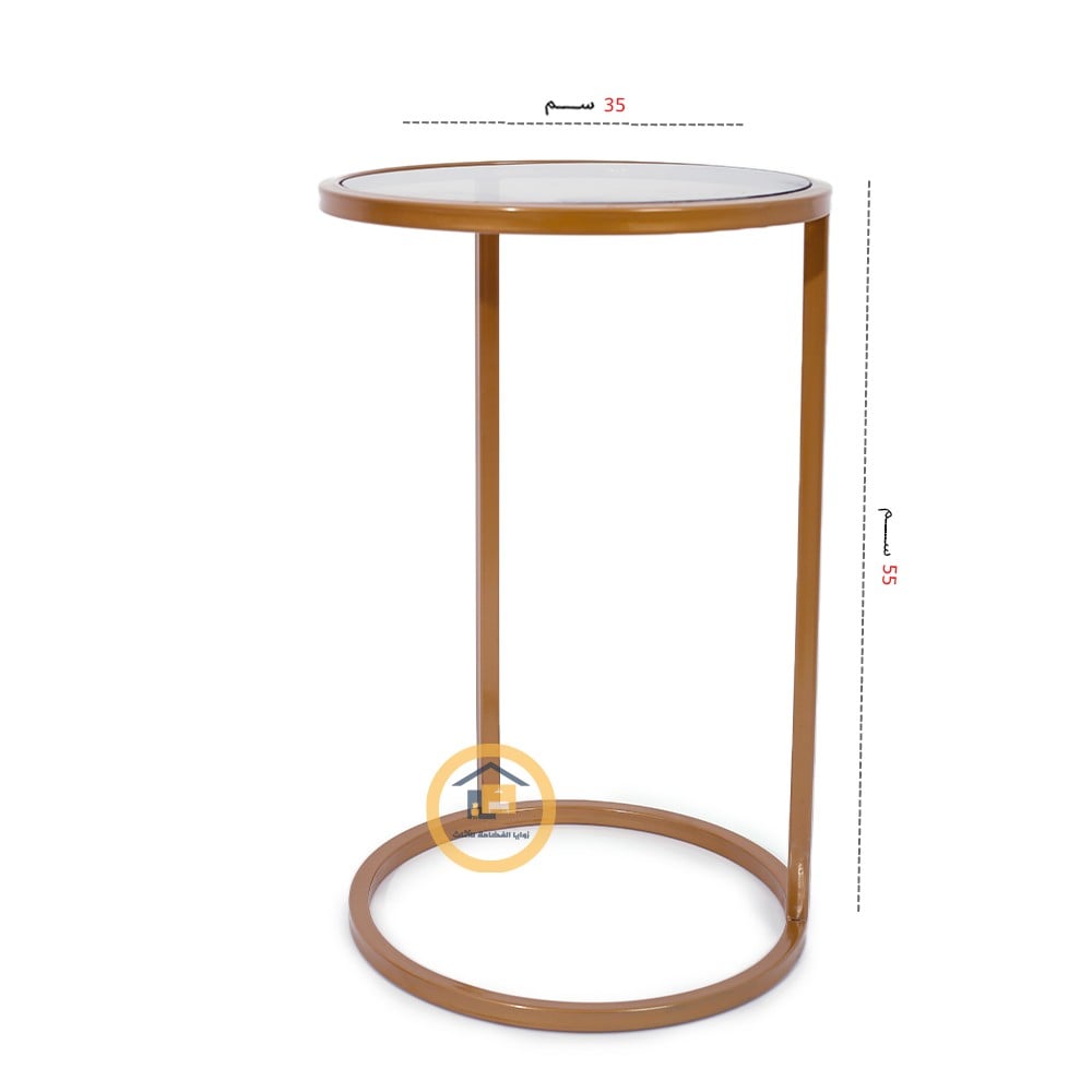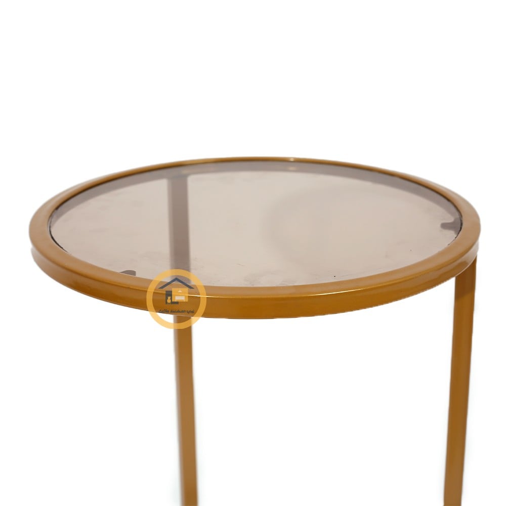 - سطح الطاولة مصنوع من الزجاج البني الشفاف.