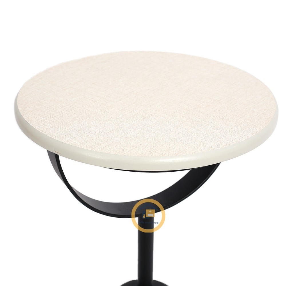 • سطح خشبي دائري شبيه بالرخام بلون بيج.